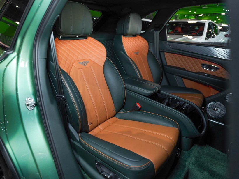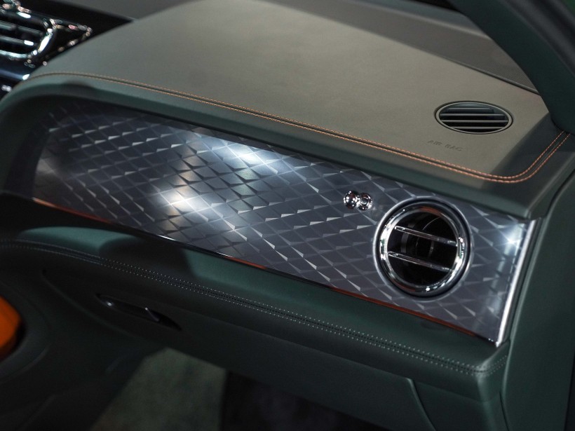 Step inside to experience a cabin crafted with extraordinary attention to detail. The interior features a rare combination of Saddle and Cumbrian Green leather, showcasing Bentley’s legendary artistry. Complementing this rich color palette is the Dark Tint Diamond Brushed Aluminium fascia and door waistrails, adding a contemporary yet elegant edge to the refined environment. Every surface, stitch, and finish has been designed to deliver unmatched comfort and sophistication.