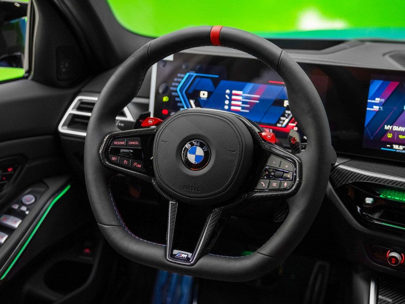 Inside the cabin, the M3 Competition strikes a balance between luxury and sportiness. High-quality materials, including premium leather and carbon fiber accents, create an inviting and driver-focused environment. The M sport seats provide optimal support during spirited drives, ensuring both comfort and control.