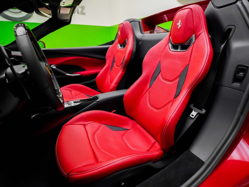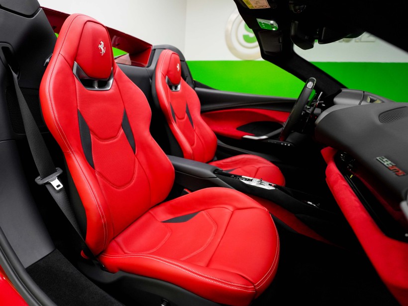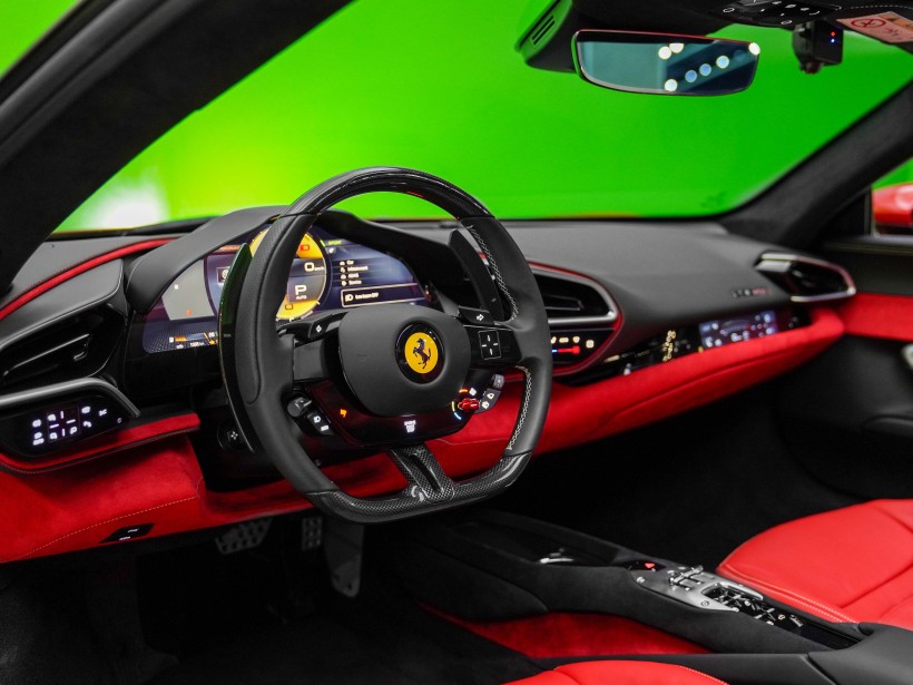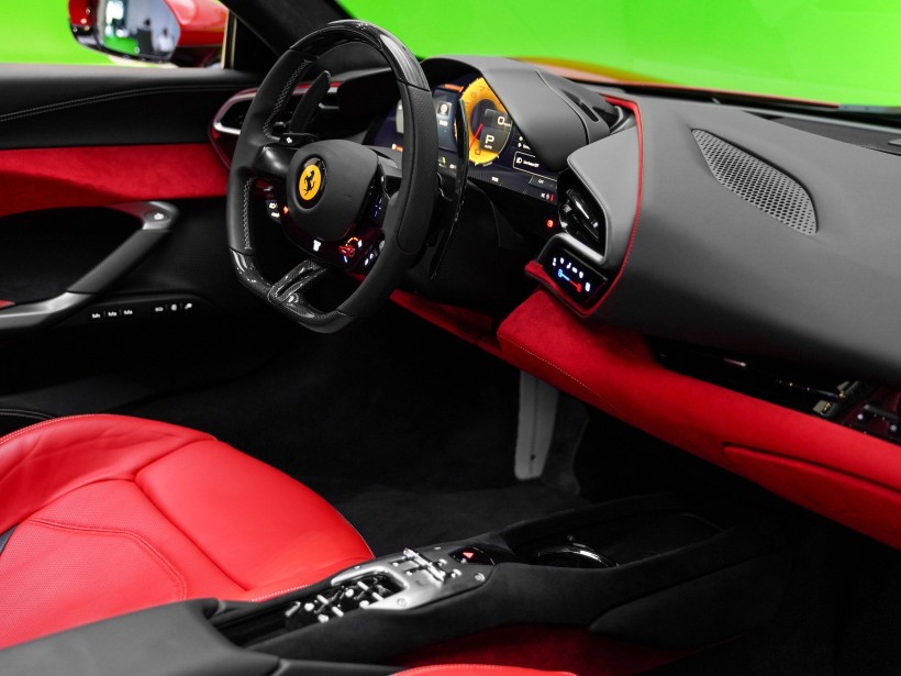 The interior is dressed in Rosso Ferrari leather, creating a bold and immersive cockpit that reflects Ferrari’s racing heritage. Every detail inside the 296 GTS is crafted around the driver, featuring a clean, digital-focused layout, premium materials, and intuitive controls. The cabin delivers a perfect balance of luxury and motorsport inspiration, making every drive feel special whether the roof is up or down.