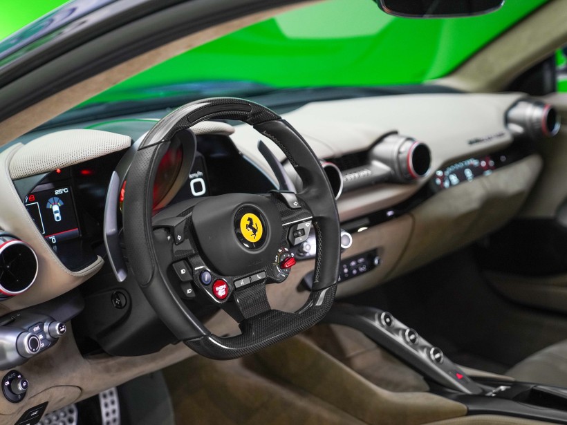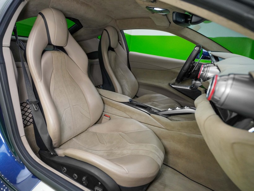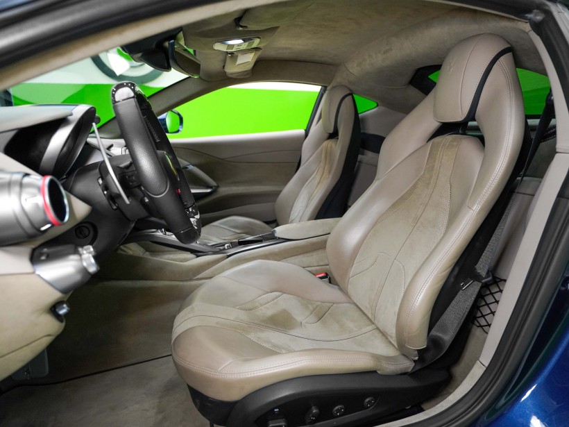 Step inside and you’re welcomed by a refined Tortora interior, creating a sophisticated contrast against the bold exterior color. The cabin blends luxury with performance-focused ergonomics, ensuring both driver and passenger enjoy supreme comfort even at high speeds. Premium materials, precise craftsmanship, and Ferrari’s driver-centric layout make every journey feel exclusive and immersive.
