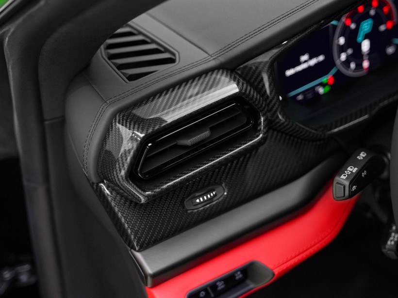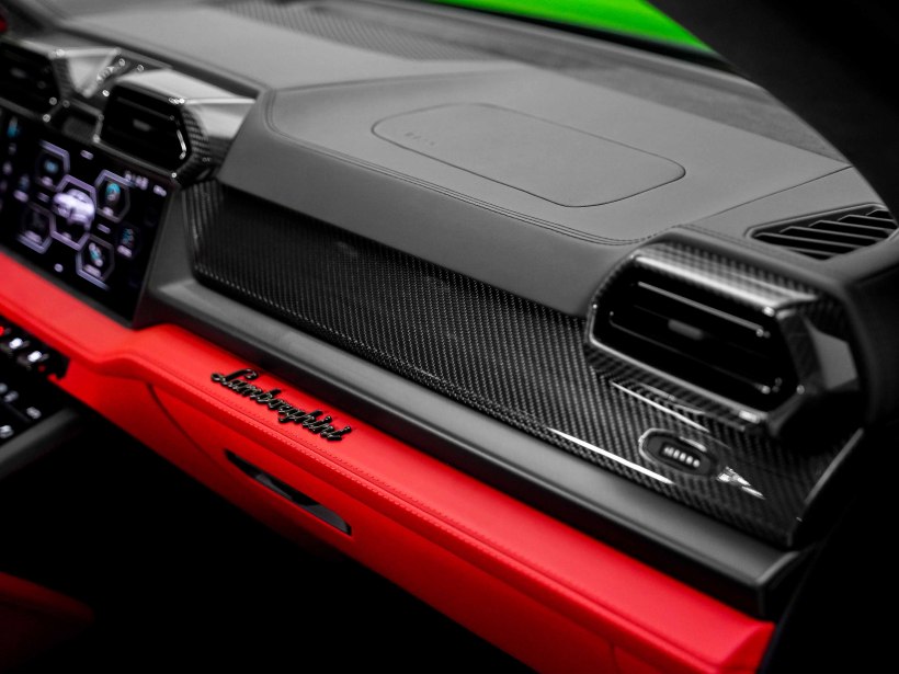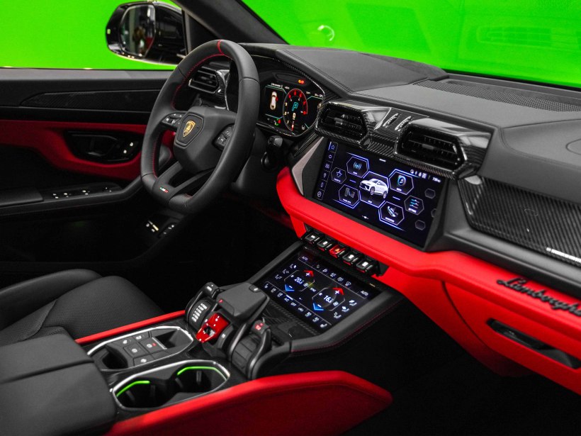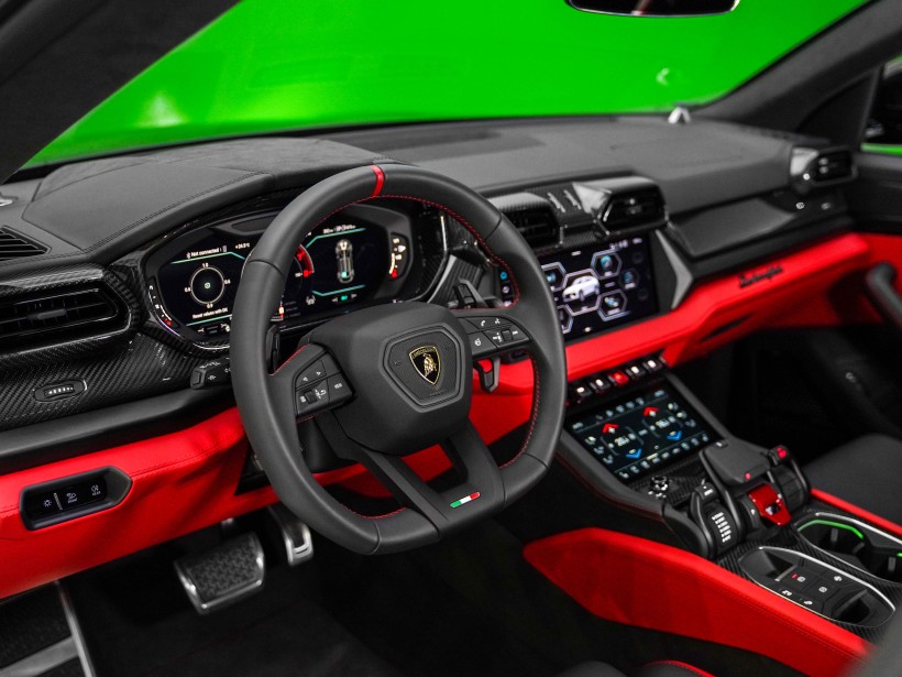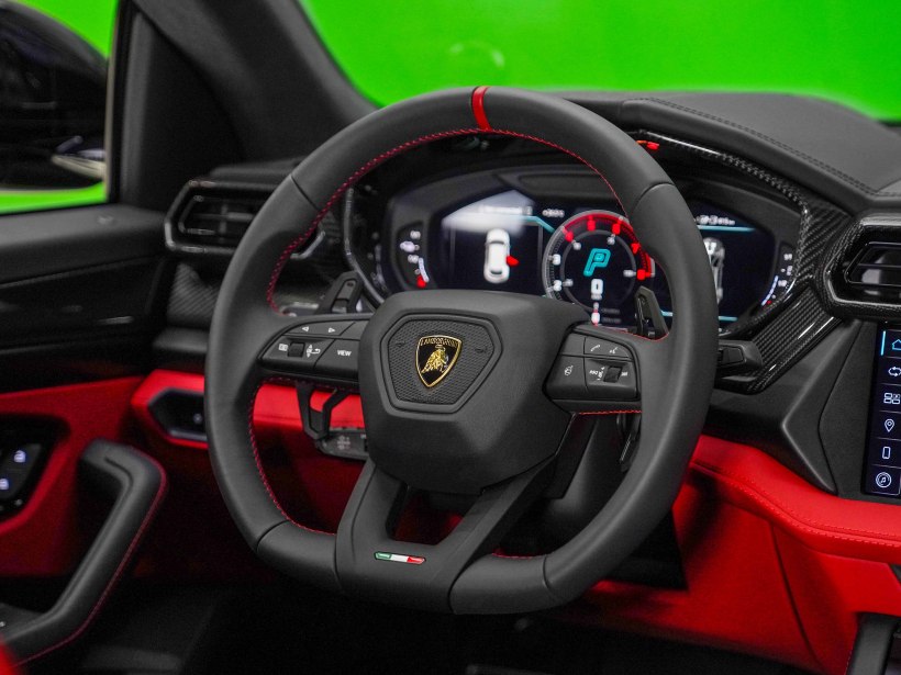 Inside, the cabin offers a breathtaking combination of luxury and motorsport-inspired design. The Nero Ade interior with Rosso Alala contrast stitching, Rosso Alala seat belts, and Performante-trim leather seats create an environment that feels both premium and athletic. The embroidered Lamborghini shield on the headrests adds a handcrafted touch, while the Big Interior Carbon Package enhances the dynamic, race-bred ambience. Sitting inside the Urus SE is an experience crafted for those who demand the finest.