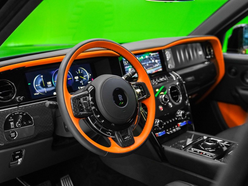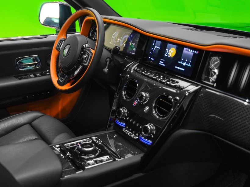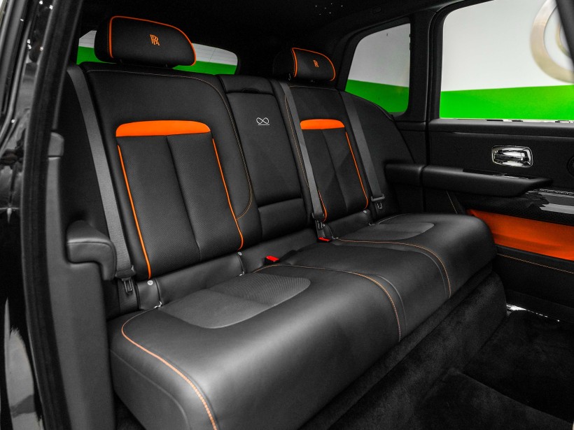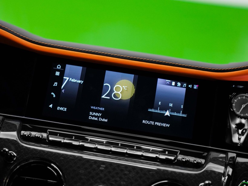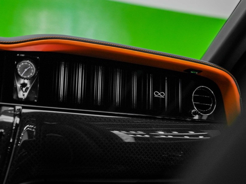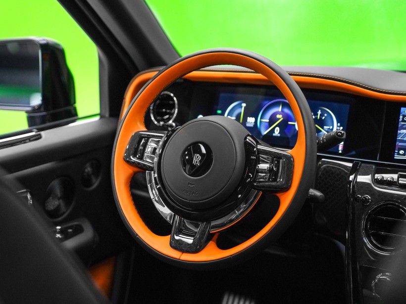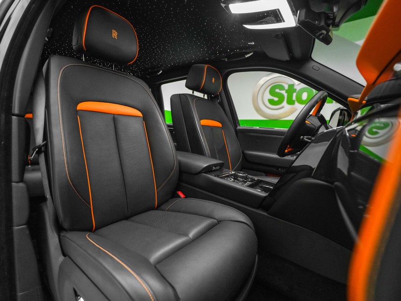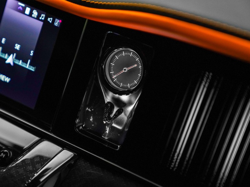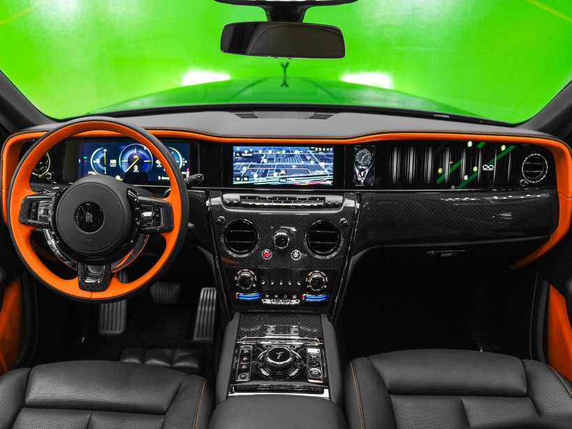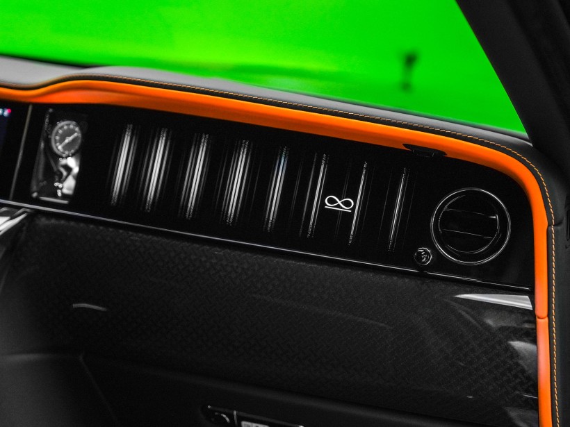 The cabin is a striking blend of sophistication and bold design, featuring a Black & Mandarin interior that perfectly balances refinement with individuality. The exquisite Double Coachline in Mandarin enhances the vehicle’s bespoke character, reflecting Rolls-Royce’s heritage of handcrafted excellence. Every surface showcases meticulous attention to detail, from premium leathers to precision finishes, creating an interior experience reserved for the most discerning owners.